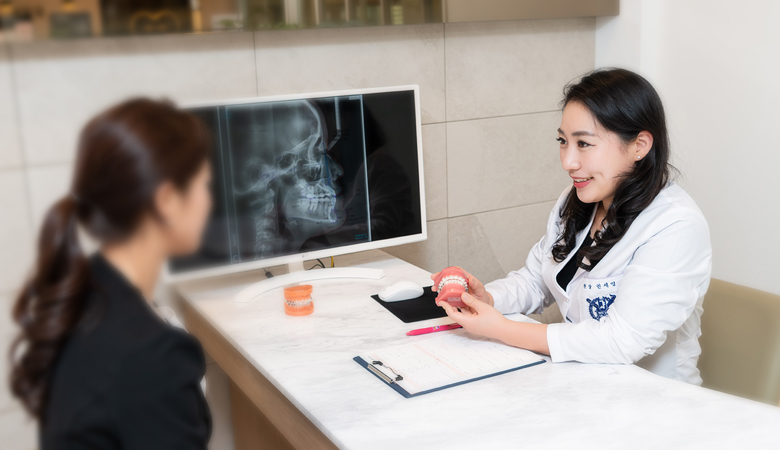 교정환자 혹은 보호자에게 환자의 치아와 얼굴의 문제, 진단 결과, 치료 목표, 계획을 설명합니다.